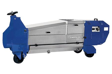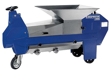 Single screw continuous presses suitable for pressing freshly picked grapes, crushed stemmed grapes and fermented husks, also employed to estract juice or liquids from wet fibrous products.