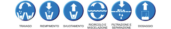 - Reversible operation (the pump can operate in both rotation directions, which permits return of excess liquid without any manual intervention, and also allows easy emptyng of pipes on completion of liquid transfer).